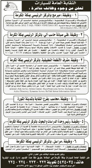 النقابة العامة للسيارات تعلن وظائف بمكة و جدة و المدينة وظيفة كوم