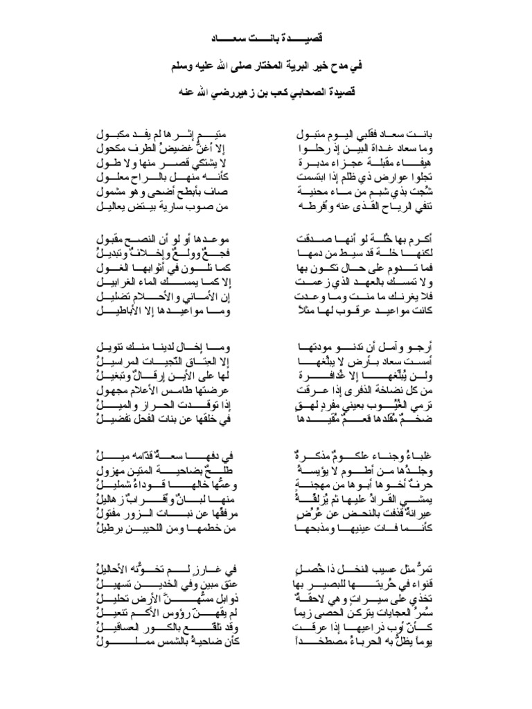 شرح قصيدة بانت سعاد فقلبي اليوم متبول Pdf