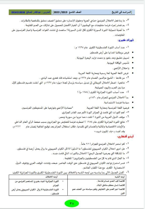 حل درس الوطن العربي بين المؤامرات والاحتلال في التاريخ للصف التاسع المطور الفصل الاول