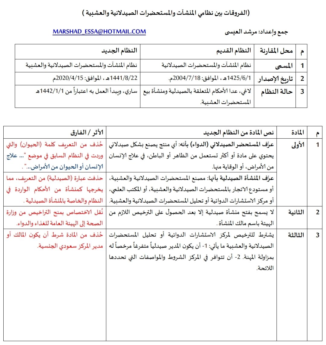 الفروق بين نظامي المنشآت والمستحضرات الصيدلانية والعشبية التنفيذ العاجل