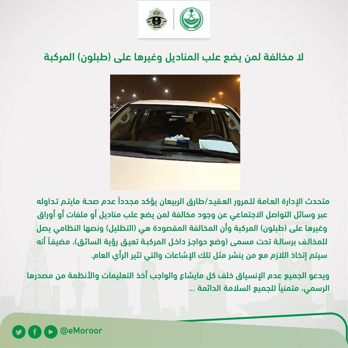 المرور السعودي On Twitter مرحبا بك عزيزنا الكريم لا يعد وضع علبة المنديل أو قاعدة الجوال على الطبلون مخالفة مرورية شكرا لتواصلك